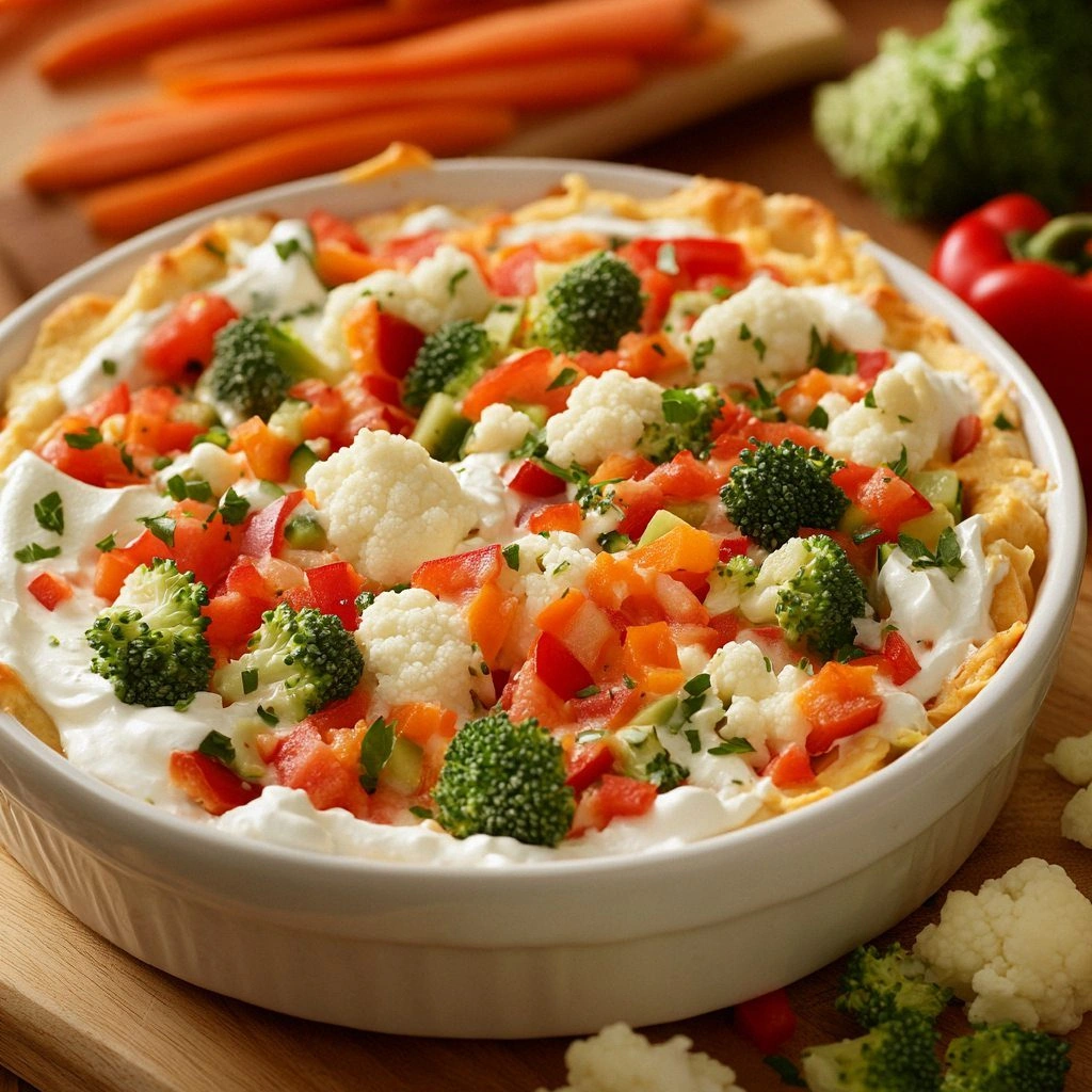 - Texture: The dip’s gooey interior contrasts with crunchy veggies and a crisped top, giving each bite a satisfying bite.